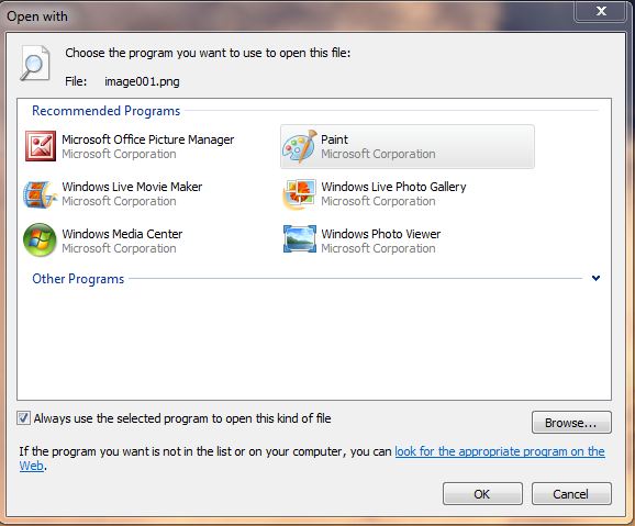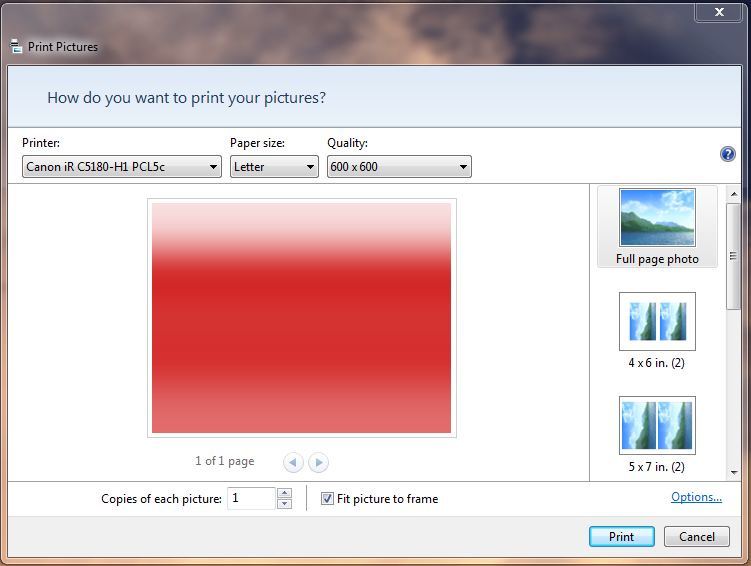 Dialog boxes like this will prevent the print job from going to the printer. For each attachment type you need to set a "printer friendly" application. In this case I changed PNG files to open with paint. Paint does not have a dialog box when you print to the default printer. You can test this by right clicking a file and “print.”